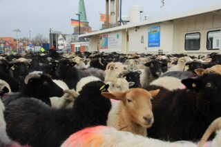 Nach einem geordneten Start entlang der Ivendorfer Landstraße erreichte die Herde gegen halb zehn die Priwall-Fähre. Dort wurden alle Schafe sicher auf die Fähre verladen und auf den Priwall übergesetzt. Anschließend setzte sich der Zug zu Fuß in Richtung Gut Brook fort, wo die Tiere die kommenden Wintermonate verbringen werden. Allerdings machte die Herde noch einen kleinen Zwischenstopp in Barendorf, um zu grasen und sich zu stärken, bevor sie dann am Freitag endgültig auf den Wiesen des Gut Brooks ankommen.