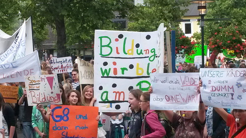 „Mit dem „Bildungsmarsch“ wollen wir Initiatoren unseren Unmut angesichts der derzeitigen Bildungsaussichten kundtun“, fasst Jacob Nicolai, Schulelternbeiratsvorsitzender des Bad Schwartauer Leibniz Gymnasiums die Intention der Aktion „Bildung JETZT!“ zusammen. Denn trotz der zugesagten Verwendung der „BaföG-Millionen“ für die Schulen verschlechtere sich die Unterrichtsversorgung zusehends, unter anderem durch eine ständig sinkende Zuweisung von Lehrkräften.