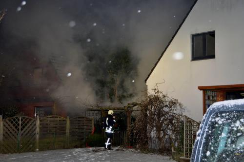 Schuppen brannte zwischen zwei Einfamilienhäusern – Feuerwehr kann ein Übergreifen verhindern