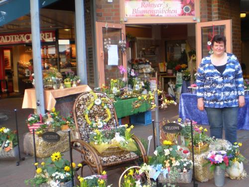 Floristin Marlies Wagner vor dem Blumenstübchen in der Markttwiete.
