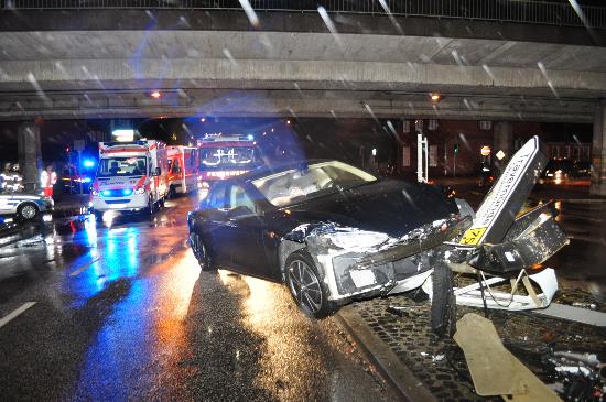 Text: TBF/Dieter Maas – Fotos: TBF/Holger Kröger (siehe Bildergalerie nächste Seite) – Heute Abend (7. Februar) kam es in der Ratzeburger Allee zu einem spektakulären Unfall. Ein schwarzer Tesla rammte einen beleuchteten Wegweiser unterhalb der Wallbrechtbrücke und wurde erst durch die Trümmern gestoppt.Feuerwehr, Notarzt und zwei Rettungswagen rückten aus, die Beteiligten des Unfalls wurden allerdings nur leicht verletzt. Beteiligt an dem Unfall waren zwei Fahrzeuge. Wie es zu dem Unfall kam, wirtd durch die Polizei noch ermittelt.