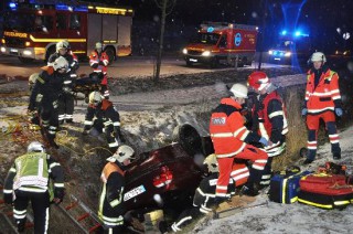Fotos: TBF/Holger Kröger – Heute kam es in der Berliner- und der Ziegelstrasse zu schweren Unfällen durch den plötzlich einsetzenden Schnee und die folgende Eisglätte. Dabei Überschlug sich zuerst ein BMW und dann krachte ein schwarzer PKW in einen Zaun. Beim ersten Unfall wurde der Fahrer eingeklemmt und die Feuerwehr mußte ihn mit schwerem Rettungsgerät befreien, beim zweiten Unfall kam der Fahrer mit dem schrecken davon. Es entstand erheblicher Sachschaden.