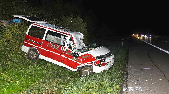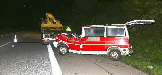 Schweren Verkehrsunfall auf der A215 kurz vor Bordesholm. Datum: 28.10.2018, Uhrzeit: 01:00 Uhr, Ort: A215 kurz vor Bordesholm in Richtung Kiel. Fotos und Text: Tom Nyfeler / Digitalfotografie Nyfeler · Schutzengel an Bord · Der Neumünsteraner Fahrer des ausgedienten Einsatzfahrzeuges der Feuerwehr, ein Volkswagen T4, hatte mehr als großes Glück und einen Schutzengel bei seinem schweren Unfall auf der Autobahn 215 kurz vor Bordesholm in Fahrtrichtung Kiel. Gegen 1.00 Uhr wurde die Rettungsleistelle Mitte in Kiel über einen schweren Verkehrsunfall mit eingeklemmter Person über den Notruf 112 informiert. Da der Einsatzabschnitt zwischen Neumünster Nord und Bordesholm war, wurde die Berufsfeuerwehr Neumünster hinzugezogen und übernahm den Einsatz. Sofort alarmierten die Leitstelle der Berufsfeuerwehr den Rüstzug, sowie zwei Rettungswagen der Berufsfeuerwehr Neumünster. Die Einsatzkräfte befreiten den schwerverletzten Mann mit schwerem Gerät und übergaben ihn an den Rettungsdienst. Das Fahrzeug kam von der Straße ab, fuhr in die gefrorene Bankette anschließend in die Böschung, prallte gegen einen Baum und kam nach ca. 60 Metern zum Stehen. An dem PKW entstand Totalschaden. Die Beamten der Autobahnpolizei sperrten auf der A7 die Auffahrt A215 Richtung Kiel für ca. 1,5 Stunde. Zwei weitere Beamte nahmen den Unfall auf, die Unfallursache wird nun ermittelt.