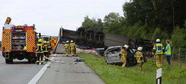 Schwerer Verkehrsunfall auf der A7 ca. 1500 Meter nach Anschlussstelle Großenaspe in Fahrtrichtung Süden