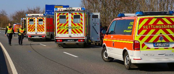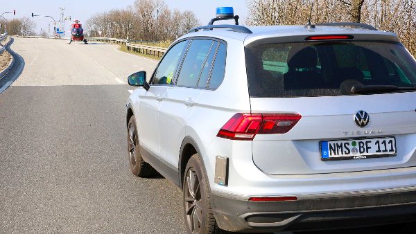 Datum: 20.03.2022, gegen 12:45 Uhr · Ort: Neumünster, L328, kurz vor der Autobahn A7, Anschlussstelle Neumünster NordFotos und Text: Thomas Nyfeler / Berufsfeuerwehr Neumünster · Neumünster – Am Sonntagmittag gegen 12:45 Uhr kam es auf dem Autobahnzubringer Nord, der L328, kurz vor der Anschlussstelle A7 Neumünster Nord, zu einem schweren Verkehrsunfall mit zwei beteiligten PKWs. Hierbei handelte es sich um einen Renault mit Kennzeichen aus den Niederlanden und einen zweiten PKW mit Heider Kennzeichen, insgesamt waren sechs Personen beteiligt. Die Verletzten wurden von den Rettungskräften betreut und dann ins Krankenhaus verbracht. Der Rettungshubschrauber flog eine schwerverletzte Person nach Kiel in das Universitätskrankenhaus, außerdem wurden dorthin zwei leicht verletzte Personen via RTW gebracht. Eine zweite schwerverletzt Person kam mit Notarztbegleitung in einem RTW in den Schockraum des Friedrich-Ebert-Krankenhauses nach Neumünster, sowie weitere zwei leicht verletzte Personen ebenfalls in FEK via RTW.Alarmiert wurde unter dem Stichwort „MANV 1“, Massenanfall von Verletzten, weshalb zahlreiche Einsatzkräfte vor Ort waren. Im Einsatz waren der Rüstzug der Berufsfeuerwehr Neumünster, die Technische Einsatzleitung mit dem ELW 2 und die Freiwillige Feuerwehr Mitte, das DRK sowie der Rettungsdienst, NEF, Leitende Notärztin aus dem FEK, ein Rettungshubschrauber und die Polizei mit ca. 40 Einsatzkräften insgesamt. Der Unfallhergang sowie die Schadenshöhe wird nun durch die Polizei ermittelt. Die L328 war während der Rettungsarbeiten in Fahrtrichtung Norden komplett gesperrt bis ca. 14:30 Uhr, anschließend wurde der Verkehr linksseitig an der Unfallstelle vorbei geleitet.