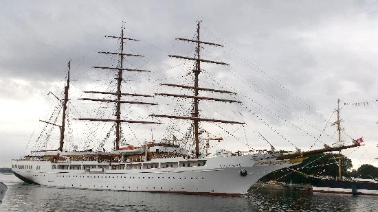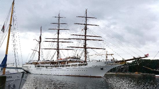 20160713_071654Text und Fotos: TBF/Holger Kasnitz – Sea Cloud ll – Der Großsegler SEA CLOUD II passierte am Mittwoch 13. Juli um 07:15 Uhr auf der Trave die PASSAT. Gegen 7:45 Uhr machte der weiße Dreimaster, bei einsetzenden Regen am Travemünder Ostpreußenkai bei fest.