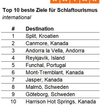 Eine Liste mit allen Destinationen finden Sie hier (http://kayak.de/news/schlaftourismus).