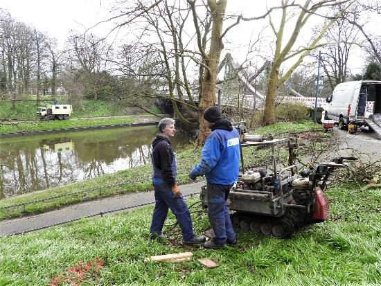 Fotos: TBF/Holger Kröger · Seit gestern bis 3. April 2020 finden Baugrunduntersuchungen für Behelfsbrücke statt. Die Uferwege unterhalb der Mühlentorbrücke werden vom 30. März bis voraussichtlich 3. April 2020 jeweils von 7.30 Uhr bis 15 Uhr abschnittsweise gesperrt. Für die Planung der Behelfsbrücke, die für den Geh- und Radverkehr sowie die Versorgungsleitungen gedacht ist, sind zur Gründungsempfehlung Baugrunduntersuchungen mittels Drucksondierungen und Sondierbohrungen notwendig. Der Geh- und Radverkehr wird mit Hinweisschildern über die geänderte Führung informiert.Im Zuge der infrastrukturellen Sanierungsarbeiten sind Baustellen und damit einhergehende Verkehrsbehinderungen leider unvermeidbar. Ziel aller Maßnahmen ist es, die Mobilität für die Zukunft zu gewährleisten. Selbstverständlich wird jede Baumaßnahme dahingehend geprüft, die Beeinträchtigungen für alle Verkehrsteilnehmer so gering wie möglich zu halten.