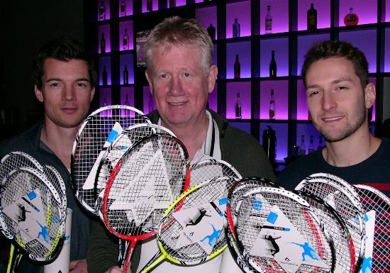 Badminton-Ausrüstung für die Friedrich-List-Schule – Lübeck (24.3.2015). Große Freude bei den Sportlehrern der Friedrich-List-Schule: Gerhard Diestelow, Geschäftsführer des Vegas Bowling & Golf, überreichte Malte Frenz und Sebastian Reiß 14 Badmintonschläger. Die Schule hatte im vergangenen Jahr an der social bowling-Aktion teilgenommen und sich von den Spendern die Sportausrüstung gewünscht. „Den Schülern macht Badminton mit guten Schlägern ganz klar mehr Spaß“, sagt Sportlehrer Malte Frenz. Auch in diesem Jahr will die Friedrich-List-Schule wieder mitmachen. „Denn Wünsche gehen einer Schule niemals aus.“