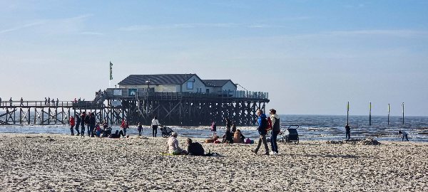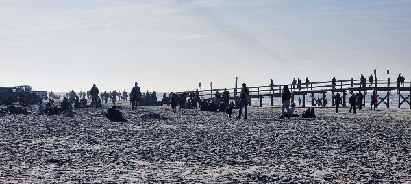 Sankt Peter-Ording (nyf). Die Sonne strahlte, nur ein kleines Lüftchen und die wenigen Wolken am blauen Himmel störte keinen der tausenden Sonnenanbetern. Sankt Peter-Ording platzte aus allen Nähten, schon mittags waren die Zufahrtsstraßen zu den Parkplätzen und zum Strandparkplatz völlig überfüllt. Kilometer lange Blechlawinen ließen den ein oder anderen verzweifeln. Doch jeder der wollte kam dem Ziel, dem langen und breiten Strand und dem ersehnten Meerblick näher und konnte sich einen Platz in der Sonne sichern. Egal ob unerschrockene Badelustige, Terrassengenießer, Strandspaziergänger, Familien, Strandkorbsitzer, Winddrachenfreunde oder Camper und Burgenbauer, für jeden war heute bei 16 Grad etwas dabei. Die Menschen genossen sichtlich den rekordverdächtig warmen und schönen vorletzten Oktobertag, jeder auf seine Weise.