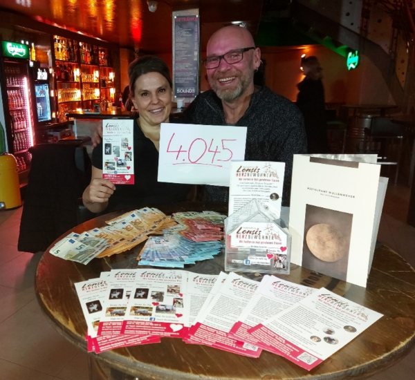 Christian Kahl von der DISCOTHEK SOUNDS in 23552 Lübeck, An der Untertrave 81-83 hat innerhalb kürzester Zeit für den Tierschutz von Lonsis Herzbewohner Stiftung ( eine Stiftung aus Ratekau die sich für in Not geratene Tiere einsetzt  ) mit Freunden, Bekannten, Personal, und Unterstützer Privat und Gastronomie, eine Summe von 4.045 Euro gesammelt und gespendet. Manuela Friedrich von Lonsis Herzbewohner Stiftung wäre bei der Übergabe des Spendenbetrags fast vom Hocker gefallen. Sie spricht allen Beteiligten Spendern Dank und Anerkennung aus und freut sich für die Tiere. Die Spenden werden für Operationen, Pflege, Unterbringung und Futter für in Not geratene Tiere verwendet.