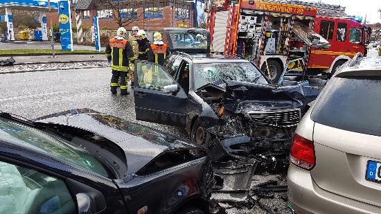 Gegen 11:50 Uhr wollte ein 55-jähriger Stockelsdorfer mit seinem Audi in der Krempelsdorfer Allee von einem Tankstellengelände in Richtung Innenstadt losfahren. Dabei übersah er einen mit möglicherweise überhöhter Geschwindigkeit ebenfalls stadteinwärts fahrenden 52-jährigen Stockelsdorfer mit seinem Mercedes auf der dortigen rechten Fahrspur. Durch den Zusammenstoß schleuderte der Mercedes in den Gegenverkehr und stieß dort mit dem Golf einer 55-jährigen Lübeckerin mit Fahrtrichtung Stockelsdorf zusammen. Aufgrund dieses weiteren Zusammenstoßes fuhr der Mercedes dann auch noch gegen einen ordnungsgemäß geparkten Golf am dortigen Parkstreifen. Der Mercedesfahrer wurde mit einem Rtw in eine Lübecker Klinik gebracht, die Schwere der Verletzungen ist derzeit nicht bekannt. Die Golffahrerin wurde mit offensichtlich leichten Verletzungen ebenfalls in eine Klinik gebracht. Der Unfallverursacher blieb unverletzt.