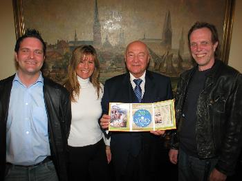 So kann das gehen: Da sagt man was und wird zudem vielleicht sogar per Videokamera aufgenommen. Und irgendwann läuft es einem hinterher. So geschehen Stadtpräsident Peter Sünnenwold, der sich Club – Betreiber Kai- Uwe Meyer einmal einem Interview gestellt hatte und von diesem nun aus Anlass dessen 20jährigem Bestehen seiner Szene – Disko mit der Übergabe einer DVD, voll gepackt und inmitten des Geschehens aus diesen 20 Jahre, überrascht wurde. „Ja“, erklärte der Stadtpräsident dazu auch schon in Rider’s Café gewesen zu sein“, nämlich mit der Jungen Union, um diese mit örtlichen Gegebenheiten vertraut zu machen. Die Nachfrage, ob er nur über diesen „Umweg“ mit Schlips und Kragen Clubzutritt erreichen wollte, blieb dabei unbeantwortet. Aber seinerseits große Hochachtung gegen über der Hansestadt und vor allem eines Stadtpräsidenten sprach der „Rocker“ Kai – Uwe Meyer mit großen Respekt aus: „Eine Stadt mit solcher Geschichte, mit solcher Kultur, die sich so mit der Moderne verbunden fühlt, macht mich ganz stolz.