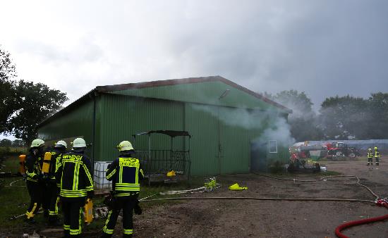 Um 19:44 Uhr ertönten die Sirenen und digitalen Meldeempfänger in Arpsdorf, Padenstedt, Wasbek und Ehndorf. Eine Landwirtschaftliche Lagerhalle, Einsatzort im „Friedrichsgaber Weg“, mit Maschinen soll in voller Ausdehnung nach Blitzeinschlag brennen. Unter schwerem Atemschutz ging der erste Angriffstrupp in das Gebäude vor. Laut Besitzer waren noch Personen im Gebäude, die an einer Landmaschine Reparaturarbeiten durchführten. Das Szenario, eine Großübung. Die Beobachter der Übung, waren mit dem Ablauf sehr zufrieden. Sogar das Wetter, spielte mit, einige Feuerwehrkameraden bemerkten nicht das es sich um eine Übung handelte. Unter der Einsatzleitung der Freiwilligen Feuerwehr Arpsdorf wurden drei Einsatzabschnitte gebildet und die Alarmübung abgearbeitet. Das außergewöhnliche Geschehen wurde von gechillten Kälbchen und Kühen verfolgt.