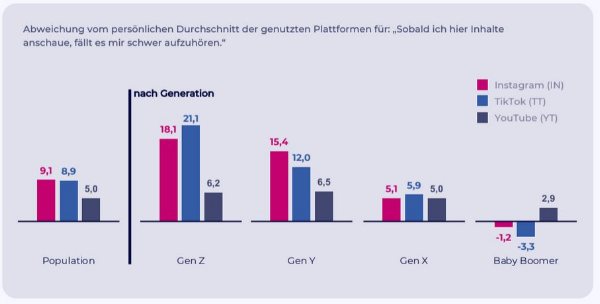 • Generation Z hat vor allem bei Kurzclip-Feeds Schwierigkeiten, auszusteigen.
