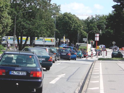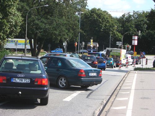 Fotos: TBF/Holger Kröger – Durch die Geschwindigkeitsbegrenzung auf 20 KM/h an der Possehlbrücke entstehen nun täglich endlos lange Staus. Ortskundige sollten diesen Engpass grossräumig umfahren, da sich dies Staus über den Kreisel bis auf die Geniner- und angrenzende  Strassen auswirkt.