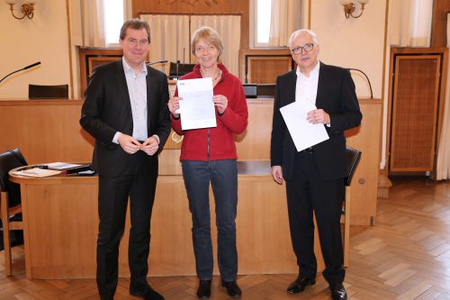 Unter dem Motto „Plastik an und in der Kieler Förde“ bewarben sich insgesamt 18 Wettbewerbsteilnehmerinnen und -teilnehmer bis Ende November 2016 bei der Stadt Kiel für den ersten Kieler Nachhaltigkeitspreis. Sechs Projekte wurden am Dienstag, den 7. März, im Ratssaal des Kieler Rathauses von Oberbürgermeister Ulf Kämpfer und Umweltdezernent und Bürgermeister Peter Todeskino mit Urkunden und Geldpreisen ausgezeichnet. Kristin Dahl von der Hochschulgastronomie des Studentenwerks SH nahm für das Einsparen von Einwegbechern und -deckeln den mit 1.000 Euro dotierten zweiten Preis entgegen.