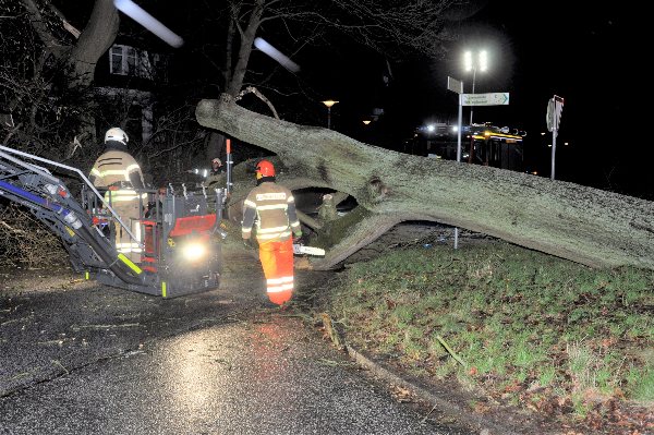 Text und Fotos: TBF/Holger Kröger · Der Sturm heute Nacht war nicht so schlimm, wie gedacht. Es kam zu wenigen größeren Einsätze in Lübeck. Die stärksten Böen der Stärke 10 wurden gegen 1.30 Uhr gemessen. Die Lübecker Feuerwehr meldete bis 7 Uhr 62 Sturmeinsätze.