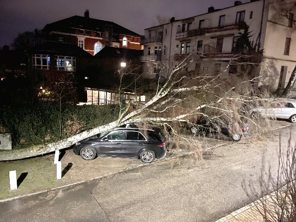 Lübeck: Ein Baum krachte um 2:12 h auf Autos in der Alexanderstraße