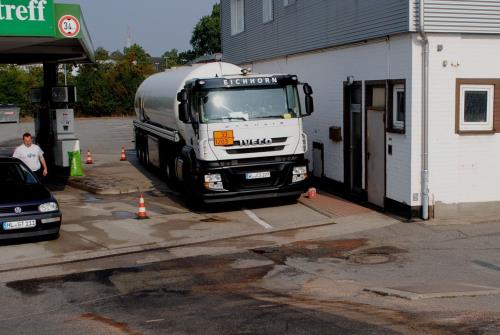 Ein ungewöhnlicher Unfall ereignete sich am Sonnabend gegen ca. 4.30 Uhr in der Posener Straße. Ein Tanklastwagen steuerte eine dortige Tankstelle an und wollte sie beliefern. Dabei setzt das Fahrzeug kurzfristig auf den asphalt auf. Der Tankstutzen riss und Diesel-Kraftstoff lief aus.Der Lastwagen hatte rund 7000 Liter Diesel geladen. Der Fahrer reagierte ganz schnell und pumpte den Kraftstoff aus dem Laster in den Tank der Tankstelle. So verteilten sich nur etwa 500 Liter kraftstoff auf dem Gelände. Da die Tankstelle über einen Kraftstoff-Abscheider verfügt, entstand kein Umweltschaden. Die Firma Possehl reinigte am frühen Morgen das Grundstück.