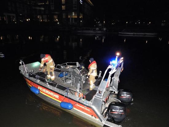 Die Feuerwehrleute leuchtete den Kaibereich großflächig aus und suchten ihn ab. Ein Taucher ging ebenfalls ins Wasser und die Polizei sperrte den Bereich für die Schifffahrt. Zusätzlich kam auch ein Boot zum Einsatz, das ein Sonar an Bord hatte, um nach nach einer möglichen Person im Wasser Ausschau zu halten. Um 0.45 Uhr ging ein zweites Mal ein Taucher ins Wasser – ohne Ergebnis, danach wurde die Suche abgebrochen und beendet.