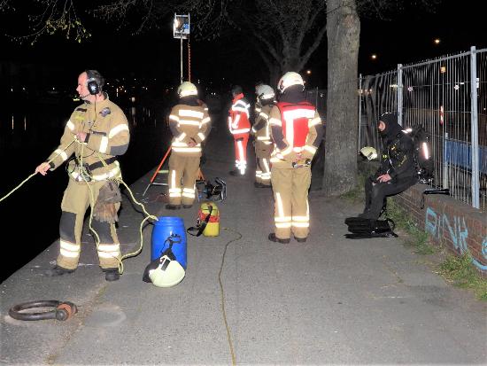Die Feuerwehrleute leuchtete den Kaibereich großflächig aus und suchten ihn ab. Ein Taucher ging ebenfalls ins Wasser und die Polizei sperrte den Bereich für die Schifffahrt. Zusätzlich kam auch ein Boot zum Einsatz, das ein Sonar an Bord hatte, um nach nach einer möglichen Person im Wasser Ausschau zu halten. Um 0.45 Uhr ging ein zweites Mal ein Taucher ins Wasser – ohne Ergebnis, danach wurde die Suche abgebrochen und beendet.