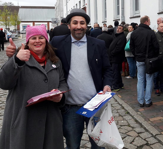 Süßer Protest am Stadtteilbüro Meesenring – Da staunten die Wartenden am frühen Morgen nicht schlecht, als plötzlich Katjana Zunft von den LINKEN und Ali Alam von der Partei DIE PARTEI am Stadtteilbüro Meesenring vor ihnen standen, um Schokolade und Protestkarten zu verteilen.