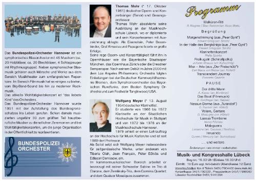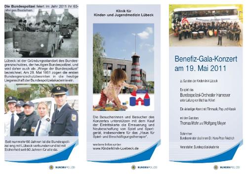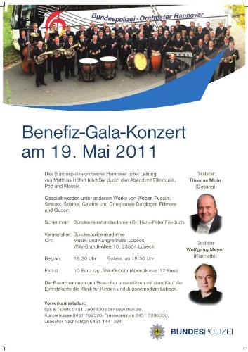 Darüber hinaus findet am 19. Mai 2011 um 19.30 Uhr ein Benefiz-Gala-Konzert des Bundespolizei-Orchesters Hannover in