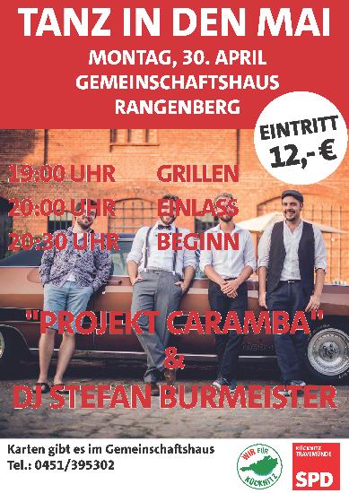 Tanz in den Mai, MONTAG, 30. APRIL, Gemeinschaftshaus, Lübeck, Rangenberg. „PROJEKT CARAMBA“ & DJ STEFAN BURMEISTER.EINTRITT