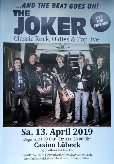 Aktuell sind THE JOKER einmal im Jahr in Burg auf Fehmarn musikalisch zu Gast, beim Biker Treff of Amerikan Bikes, dieses Jahr am 24. August, 2018/ Abend-Show, Hafenfesttage am 16. Juli in Heiligenhafen/Abends-Show, Travemünder Woche, am 25. Juli, Lotsenbühne/Abendshow, Niendorfer Hafenfest, 4. August/Abendshow, 11. August, Herrenhaus-Park Stockelsdorf, Joker live for Friends u.a. Casino Lübeck Sa. 13. April 2019.