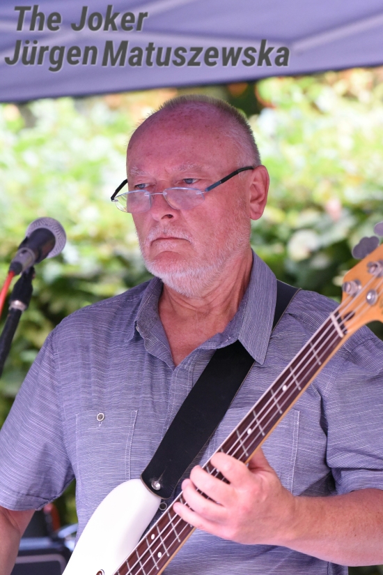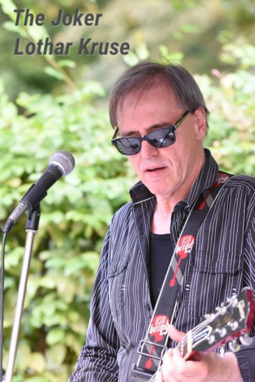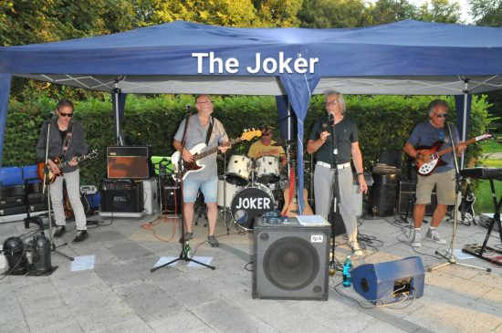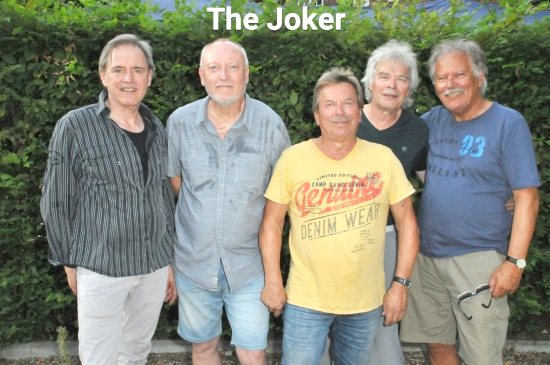 Auf dem Foto der Band sieht man von links: Lothar Kruse (Bassgitarre und Gesang), Jürgen Matuszewska (Leadgitarre und Gesang), Aegi Budig (Schlagzeug und Gesang, der einzige Musiker der Band der sitzen darf), Utlef Urbszat (Leadsänger, Maracas und Akustikgitarre), Rainer Schlichting (Gitarren, Keyboard und Gesang). Rainer Schlichting ist der Ur-Joker und Gründungsmitglied der Band, die es jetzt schon über 50 Jahre gibt. Einige der Musiker hatten früher schon in anderen Bands gespielt und präsentierten jetzt ihre geballte Erfahrung gemeinsam vor dem Super-Publikum. Gespielt wurden Songs von den Beatles, Rolling Stones, Status Quo, Creedence Clearwater Revival, Joe South und vielen anderen Interpreten. Die Gäste der Veranstaltung tanzten und sangen alle Musiktexte mit.