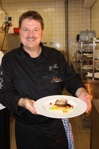 Jörg Sackmann+Gericht-29 SHGFSusanne Plaß-50PGlänzende Stimmung zum Auftakt des 29. Schleswig-Holstein Gourmet Festivals am Sonntag, 20. September 2015, im Maritim Seehotel. Die sympathischen Starköche Harald Wohlfahrt und Jörg Sackmann hatten den weiten Weg aus Baiersbronn im Schwarzwald nicht gescheut, um im ‚echten Norden‘ ihre Kochkunst zum Auftakt der neuen Festivalsaison zu präsentieren.