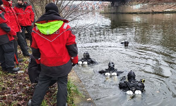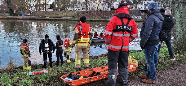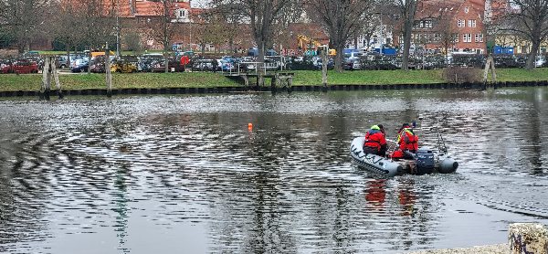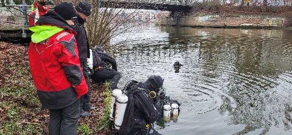 ots) Fotos: TBF/Holger Kröger · Seit dem 14. Januar (Samstag) wurde ein 49-jähriger Lübecker vermisst, der zuletzt kurz vor 06:00 Uhr morgens allein die Diskothek „HÜX“ verlassen hatte. Seitdem fehlte jede Spur des Mannes. Weil nicht auszuschließen war, dass er ins Wasser gefallen sein könnte, gab es am heutigen Tag (23.01.2023) einen erneuten Tauchereinsatz, der dann die traurige Gewissheit brachte.Nachdem am letzten Dienstag (17.01.2023) bei einem ersten Sucheinsatz Polizeihunde auf dem Wasser der Kanaltrave anschlugen und in der Folge Taucher im Wasser nicht fündig wurden, sollten am heutigen Tag die Suchmaßnahmen intensiviert fortgesetzt werden. Erneut kamen ab 09:00 Uhr zunächst die Leichenspürhunde zum Einsatz, um die Ergebnisse der letzten Woche zu bestätigen. Tatsächlich schlugen sie auch diesmal an derselben Stelle an.