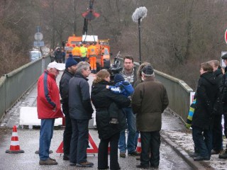 Fotos: TBF/Holger Kröger – Seit heute ist es amtlich und Realität: Die Travebrücke in Reecke wurde ist gesperrt – Bürgern protestierten lautstark. Die Travebrücke zwischen der Lübecker Ortschaft Reecke und der Stormarner Gemeinde Hamberge ist seit heute für den Autoverkehr voll gesperrt.50 Bürger protestierten heute Mittag gegen den geplanten Abriss der 60 Jahre alten Brücke.