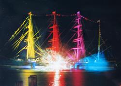 Foto: RB: Auch bei einer der ersten Laser-Shows erstrahlte die „Passat“ schon in ungewöhnlichem Spiel der Lichtbündel