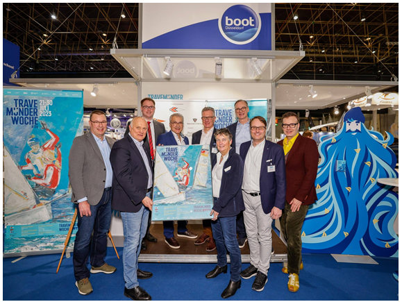 Ein neues Design, ein großes Jubiläum und ein hochklassiges Regattaprogramm: Die 134. Travemünder Woche (21. bis 30. Juli) hat in 2023 viel zu erzählen. Nach zwei Jahren Pandemie-Pause konnte der Startschuss zum Regatta- und Festivalevent endlich wieder zum Empfang der Travemünder Woche im Rahmen der boot in Düsseldorf gegeben werden – der weltgrößten Wassersportausstellung, die der treueste Partner der Travemünder Woche ist. Und das boot-Comeback bot die Gelegenheit, beim traditionellen Treffen am ersten Sonntag der boot den Vertretern aus Sport, Politik und Wirtschaft das neue Gesicht der Segelwoche zu präsentieren, die Verbindung zur Lübeck Travemünde Marketing GmbH (LTM) darzulegen und auch den Hauptveranstalter, den Lübecker Yacht-Club, in seinem 125. Jahr des Bestehens hochleben zu lassen.