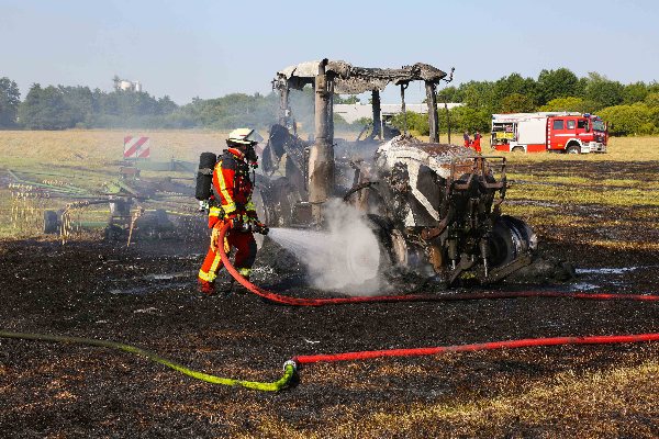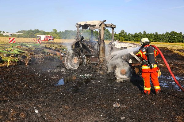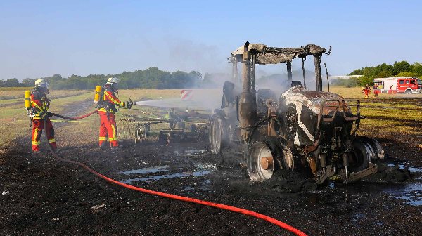 Treckerbrand bei Hitze – ausgedehnter Flächenbrand verhindert