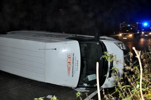 (Fotos: TBF/Holger Kröger – Text: Hanseatic-News) – Sie waren offenbar zu schnell, hatten zu wenig Sicht und zu allem Überfluss war nun wohl auch noch Alkohol im Spiel. Drei Insassen eines Kleintransporters sind in der Nacht bei einem Unfall auf der Autobahnabfahrt Lübeck-Zentrum der A1 verletzt worden. „Weitere Bilder >>>!“ Nach ersten Erkenntnissen wollte der Transporterfahrer die Autobahn gerade verlassen, doch offenbar