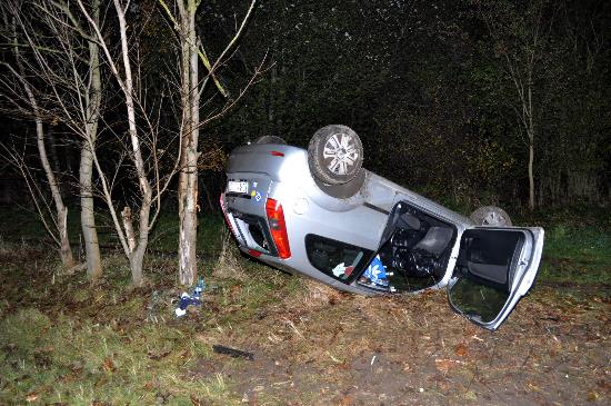 Text und Fotos: TBF/Holger Kröger – Gegen 21:00 Uhr fuhr gestern ein Pkw-Fahrer auf der A226 in Fahrtrichtung Lübeck. Kurz vor der Abfahrt Lübeck-Dänischburg kommt das Fahrzeug von der Fahrbahn ab. Es überschlägt sich und schleudert knapp an einem Hinweisschild vorbei auf dem Dach liegend gegen einen Baum.