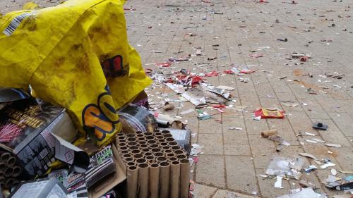 Text und Foto: TBF/Holger Kasnitz · Wieviel Feuerwerksmüll von den unzähligen Raketen, Batterien, Knallern uvm., mag wohl in Lübeck angefallen sein? Wenn wir uns den Berg auf dem Brolingsplatz ansehen, dürfte es in weit mehr besiedelten Stadtteilen noch viel schlimmer ausgesehen haben!