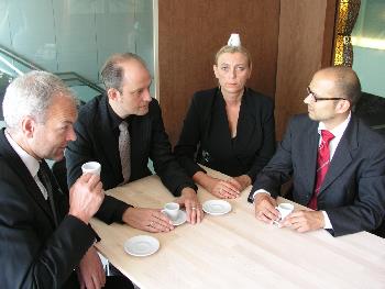 aus Die Grönholm-Methode .Vier Bewerber haben sich zu einem Vorstellungsgespräch um einen Managerposten in einer großen Firma eingefunden. Die Kandidaten, drei Männer und eine Frau, haben die Schlussphase des Auswahlverfahrens erreicht. Jetzt geht es ums Ganze.