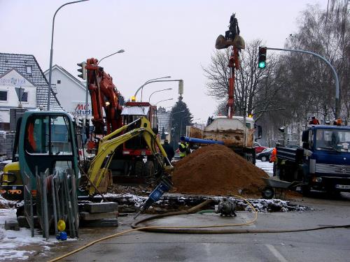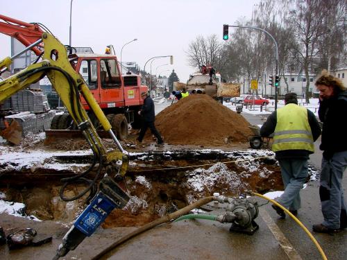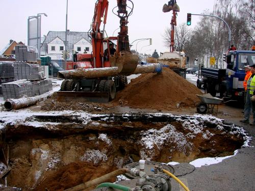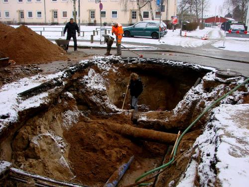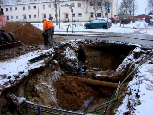 Eine Hauptleitung mit einem Durchmesser von 300 Millimetern war geborsten. (Zum Bilderbogen, klicke auf…>>>) Die Mitarbeiter der Stadtwerke konnten das beschädigte Rohr austauschen.