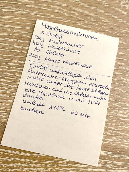 Nike dachte, wenn hier bei uns schon so ein kleiner Wichtel wohnt, vielleicht kann Tomte die klitzekleine Schrift lesen und den Text ganz ganz groß aufschreiben. Das hat er gemacht. Dann haben die Eltern von Nike und die Eltern von Tomte gestaunt. Nur Nike nicht, die kann ja noch nicht lesen. Gefreut hat Sie sich dann aber doch. Es ist ein Backrezept für Ihre Playmobil Küche. Ein ganz tolles Back Rezept für Haselnussmakronen. Da müssen jetzt Alle ran und backen, auch die Eltern von Tomte Mama Swea und Papa Asmo.