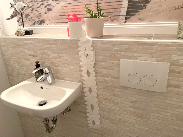 Tomte hat seinen Weihnachtsbaum mit einigen Kugel verschönert. Das Toilettenpapier hat er auch gleich noch verschönert. Ein schnipp dort, ein schnipp hier und schon ist das schönste Muster im Toilettenpapier.