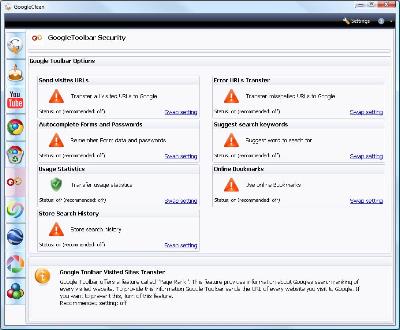 Mit GoogleClean verhindern Sie beispielsweise, dass die Toolbar besuchte URLs übermittelt, dass fehlerhafte URLs an Google geschickt werden und dass Nutzungsstatistiken übertragen werden.