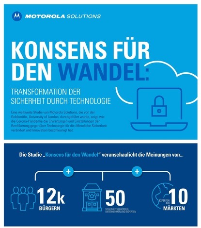 Idstein (ots) – Goldsmiths, University of London, identifiziert Trends, die für Sicherheitsorganisationen und Unternehmen neue Chancen eröffnen Die Corona-Pandemie hat nicht nur die Art verändert, wie wir kollektiv über Sicherheit denken, sie hat auch unsere Erwartungen an Technologie neu definiert. Dies belegt eine internationale Studie, die Motorola Solutions (http://www.motorolasolutions.de) zusammen mit der weltweit führenden Forschungseinrichtung Goldsmiths, University of London (https://www.gold.ac.uk/), durchgeführt hat. Die Studie „Konsens für den Wandel“ (Consensus for Change) untersucht, wie die globale Pandemie das Bewusstsein für den Einsatz zukunftsweisender Technologien bei Polizei, Feuerwehr, Rettungsdiensten aber auch bei Privatunternehmen geschärft hat, um Geschäftsprozesse auch in Krisenzeiten aufrecht zu erhalten und die Sicherheit der Bevölkerung zu gewährleisten. Die Studie belegt außerdem, wie die Krise Innovation und die Einführung neuer Technologien auf der ganzen Welt beschleunigt hat. Für die Studie der Goldsmiths, University of London, wurden 12.000 Bürger, 50 Vertreter von Sicherheitsbehörden sowie Experten aus zehn Märkten* befragt, darunter auch 1.000 Personen aus Deutschland.