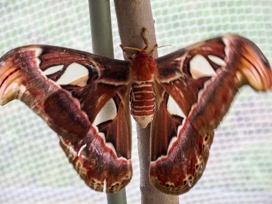 Text und Fotos Harald Rothe – „Werkstatt der Schmetterlinge“ auf dem Gut Helmstorf bei Lütjenburg mit einer Sonderschau des Schmetterlinggartens Klütz/MV mit 100 lebenden Schmetterlingen.Besonders zu beachten dabei sind die wunderschönen Himmelsfalter mit ihren blau gefärbten Innenseiten der Flügel. Im Flug nur sehr schwer zu fotografieren, sind sie, so sie sich denn mit ausgebreiteten Flügeln niederlassen, eine Augenweide.Auch der größte Schmetterling der Welt, der Atlasspinner, ist dort zu bestaunen – derselbe lebt nur fünf Tage, da er keine Nahrung aufnehmen kann (kein Saugrüssel) und in den Lebenstagen einen Partner zur Fortpflanzung finden muss.