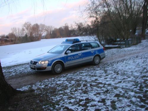 Nachdem sie schon einige Zeit unterwegs waren brach einer der beiden in das noch zu dünne Eis der Wakenitz in Höhe Goldberg ein. Die Einbruchsstelle war ca. 10 m vom Ufer entfernt und so tief, dass der 75-Jährige dort nicht mehr stehen konnte. Während ein aufmerksamer Zeu ge über sein Handy sofort einen Notruf absetzte, versuchte der Freund des Eingebrochenen und ein 54-Jähriger Lübecker die Person aus dem Eis zu retten. Unter dem Einsatz seines eigenen Lebens legte sich der Lübecker auf den Bauch und robbte so an die Einbruchsstelle zu dem Verunfallten. Er wiederum wurde von dem 75-Jährigen Freund und einer Spaziergängerin an den Füßen festgehalten. Sie bildeten eine so genannte Rettungskette.Nachdem die erste Idee, mit einem Stock den 75-Jährigen wieder an Land zu ziehen, misslang, robbte der 54-Jährige so dicht an die Stelle heran, dass er dem Groß Grönauer die Hand zureichen konnte. Anschließend zogen alle gemeinsam den Verunfallten auf das Eis und anschließend an Land. Ein alarmierter Rettungswagen wartete bereits schon an Land, übernahm die erste Notversorgung und brachte den Verunglückten mit Verdacht auf Unterkühlung in die Sana Klinik. Offensichtlich war der Mann gut abgehärtet und konnte nach kurzer Zeit wieder nach Hause gehen. Die Wasserschutzpolizei möchte eindringlich auf die Gefahren der jetzt neu und schnell zugefrorenen Seen hinweisen. Das Eis ist immer noch zu dünn und kann sehr tückisch sein. Gerade im Bereich der Uferzonen und in der Nähe von Brücken und Stegen kann es sein, dass die Eisflächen gerade erst zugefroren sind und nur 1 – 2 Zentimeter dick sind.