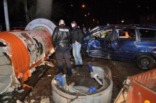 Zu schnell – VW Sharan mäht Litfaßsäule um – vier Verletzte