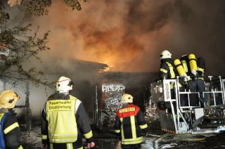 Text: hanseatic news – Fotos: TBF/Holger Kröger – Bad Schwartau- Gegen 3:15 Uhr brannte es im Gewerbegebiet Langenfelde Nord. Die Einsatzkräfte fanden einen abgestellten LKW-Anhänger vor der in voller Ausdehnung brannte. Der Anhänger gehört vermutlich zu einer örtlichen Schaustellerfamilie und hatte Holzböden für ein Partyzelt geladen. Unter schweren Atemschutz und mit Hilfe von Schaum konnten die Feuerwehrleute den Brand löschen. Kurze Zeit später flammte das Feuer wieder auf, sodass nachgelöscht werden musste.Noch während der Löscharbeiten kam es zu einem zweiten Feuer im Stadtgebiet Bad Schwartau. In der Elisabethstraße brannte der alte Waldbahnhof in voller Ausdehnung. Rund 50 Einsatzkräfte waren mehrere Stunden mit den Löscharbeiten beschäftigt. Aufgrund der starken Rauchentwicklung musste der Bahnverkehr auf der Strecke Lübeck-Travemünde voll gesperrt werden. Da direkt neben dem alten Waldbahnhof die A1 verläuft mussten Beamte der Autobahnpolizei den Verkehr vor den dichten Rauchschwaden warnen.